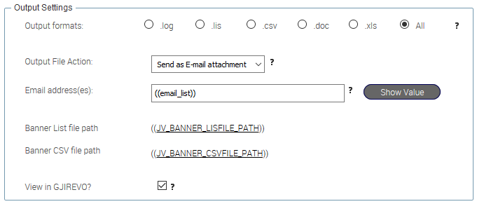 The Banner output settings determine how the job's output will be formatted and distributed