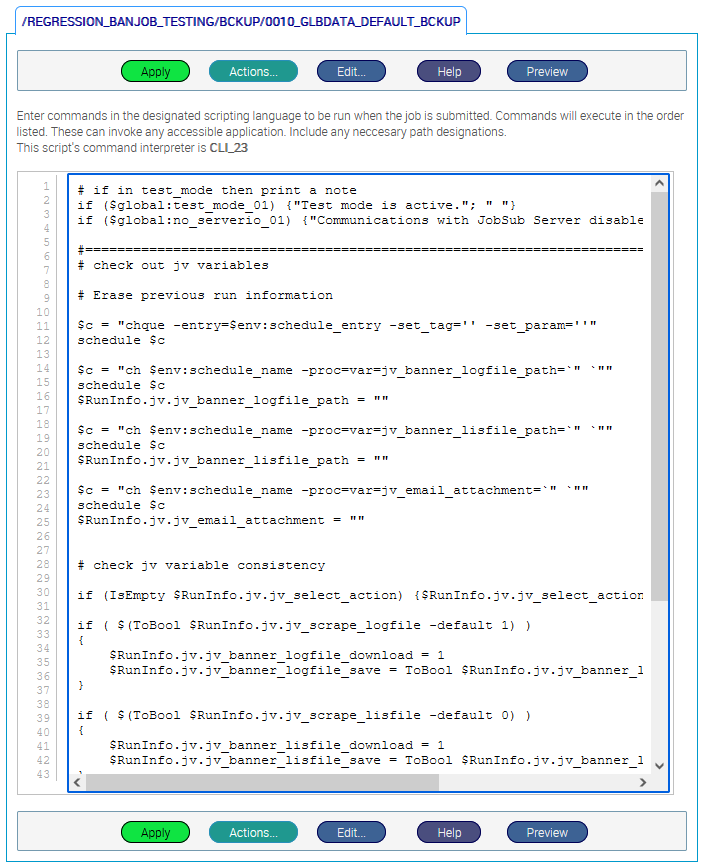 Click the Preview button to view the Processed script as it will appear when the job is submitted.