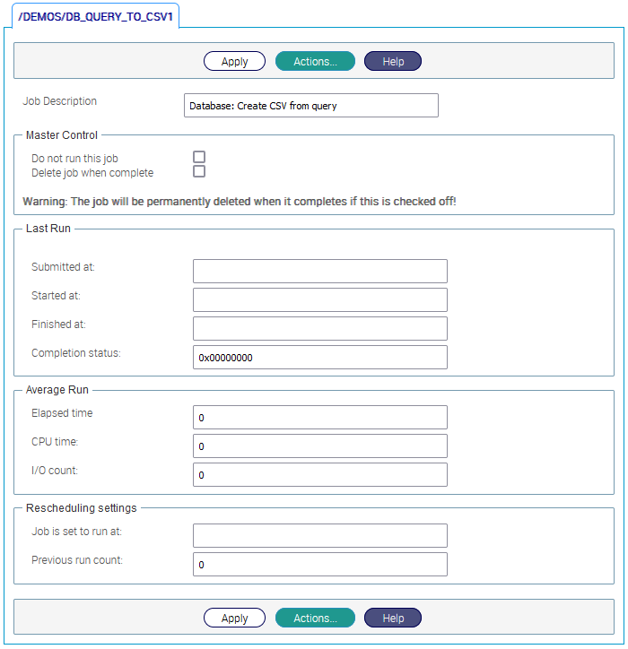 When this box is checked the job will not be executed. The job is treated as having immediately finished with the status code SCHEDULE -W-RUNBLOCKED. All (and only) WARNING level initiates will be invoked. |