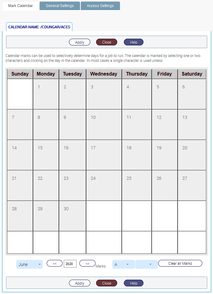 Select Properties to View the Calendar Properties for the currently selected Job. For Details of the Properties see the Calendar Property Page Section of this User Guide.
