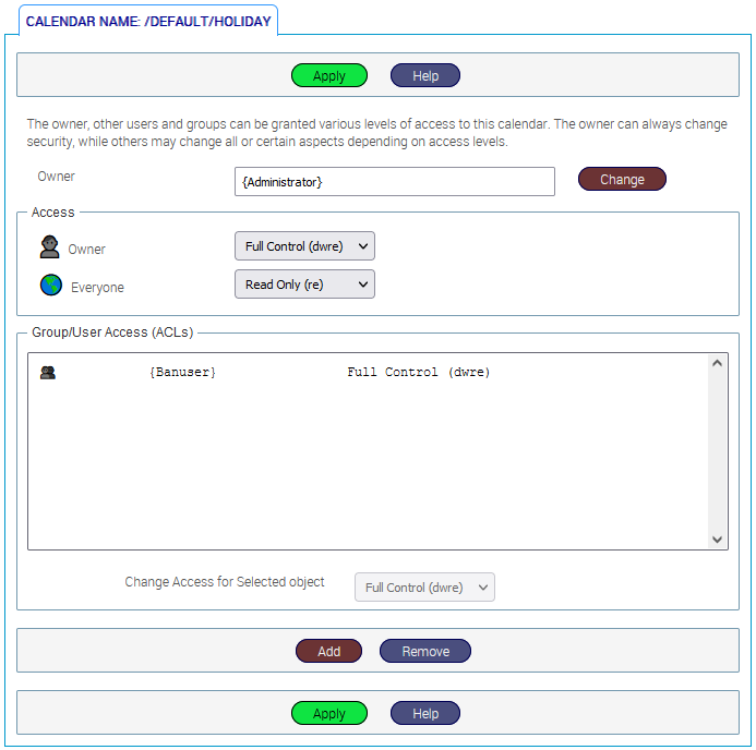 To change the Access to the calendar, Use the dropdowns to select the desired access level and click Apply.png)
