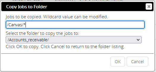 In order to copy all jobs in a folder to another folder, select Copy Jobs to Folder and select the target folder from the dropdown list. Click OK to copy the jobs.