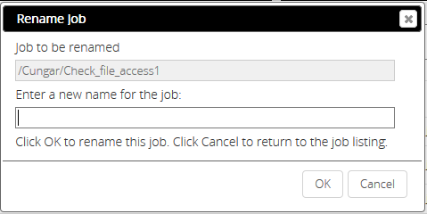This will rename the job from the old name to designated new name. Enter the new Name for the job and click OK.