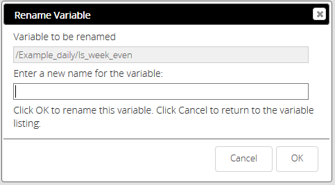 This will rename the variable from the old name to designated new name. Enter the new Name for the variable and click OK.