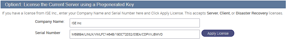 3.Click Apply License to license the server