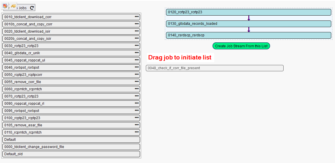To build the initiate list, drag jobs into the green box in the order you want the jobs to initiate. Jobs may be reordered by dragging individual jobs up and down.