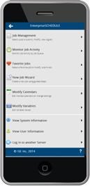 The EnterpriseSCHEDULE Web Client Mobile Interface is a mobile browser based version of the Web Client detailed in the previous chapter. EnterpriseSCHEDULE Mobile gives users 24/7 remote access to vital Job Scheduling Functions. With EnterpriseSCHEDULE Mobile, you can directly access your jobs, scheduling queues, calendars and variables from any remote device. Available functions include:
