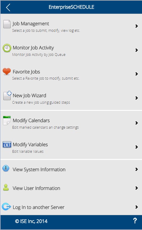 The first time you start EnterpriseSCHEDULE Mobile Web Client, you will be asked to log in. To do so just type in the server address, the group number, your username and password. This will establish a record for your user name and password in the server database which will be utilized the next time you log in. The server address, group number and username will be retained in the login screen the next time you log in. Log in using the user name and password which you use for the server on which EnterpriseSCHEDULE is installed.