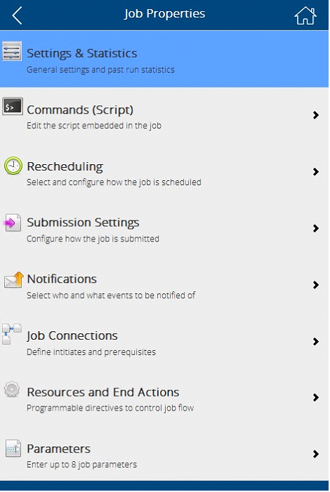 Modify the job's properties including Settings, commands, rescheduling, submission settings etc.
