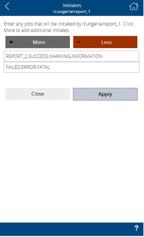 The forward going connection is called an "initiate". Initiates are triggered when a job completes. Associated with each initiate can be a condition or severity level at which the next job should be triggered. In this way, different branches can be taken based on the success/failure of a particular job.
