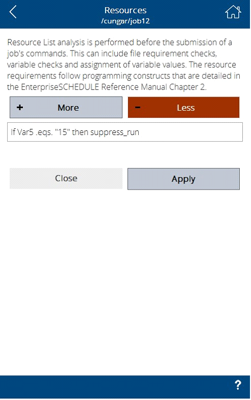 Resource List analysis is performed before the submission of a job's commands. This can include file requirement checks, variable checks and assignment of variable values.