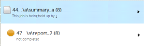 This list displays any job that is waiting for a Prerequisite to be resolved. Prerequisites are jobs that must complete before the current job is submitted. When the prerequisites are all satisfied, the job moves on to the next applicable queue