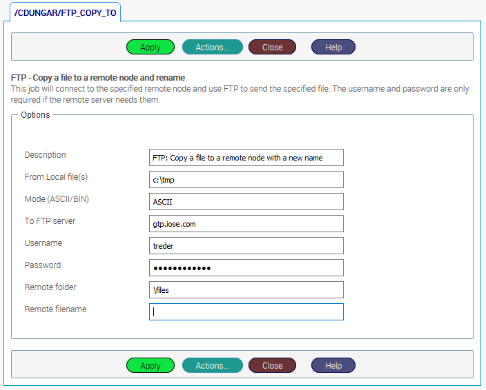 options_description = "This job will connect to the specified remote node and use FTP "