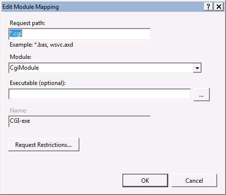 Note: Make sure the Request path field's value is *.cgi. The default of *.exe will not work.