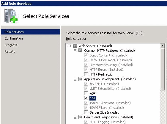 If the CGI role service is not already enabled, it must be manually enabled. To do this: