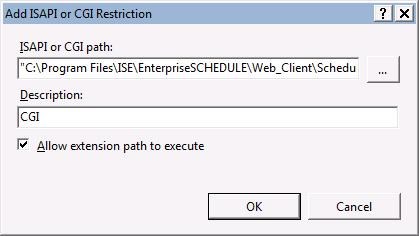 (usually C:\Program Files\ISE\EnterpriseSCHEDULE\Web_Client\Schedule.cgi). IIS requires it to be in double quotes.