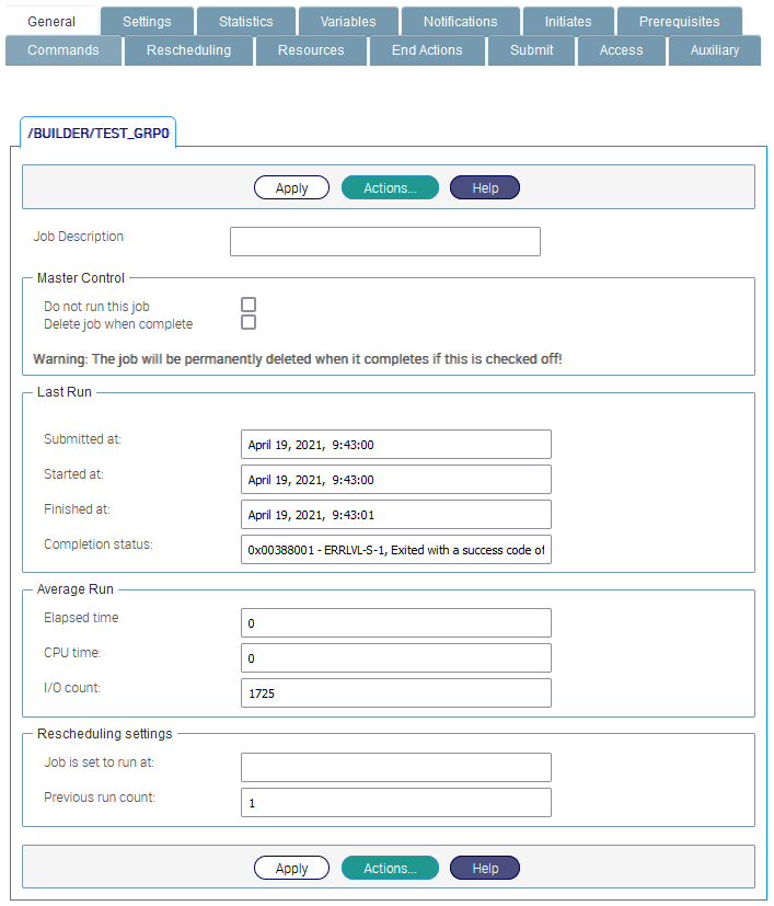 Select Properties to View the Job Properties for the currently selected Job.