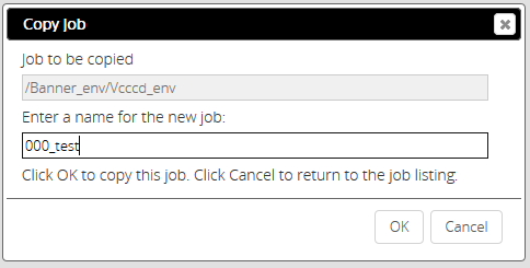 Select Copy Job from the Job Action Menu to copy the currently selected job. Enter the name of the new job in the new job field. Click OK to copy.