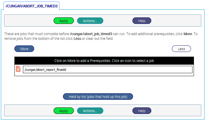 Click More to add additional Prerequisite jobs. Click Less to remove the last item from the list.