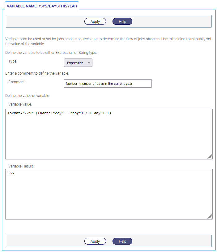 For more on Expression variables see the EnterpriseSCHEDULE User's guide.