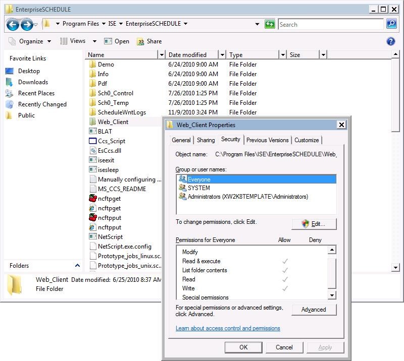 1)Check that the physical directory c:\Program Files\ISE\EnterpriseSCHEDULE\web_client\ has the following protection settings: